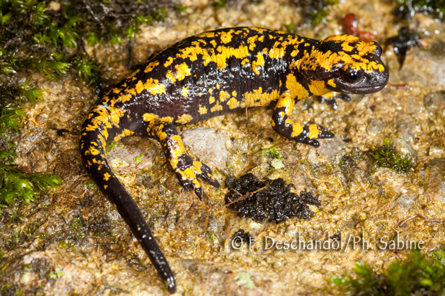 : Salamandre tachetée (Salamandra salamandra bernardezi), Puron, Espagne.