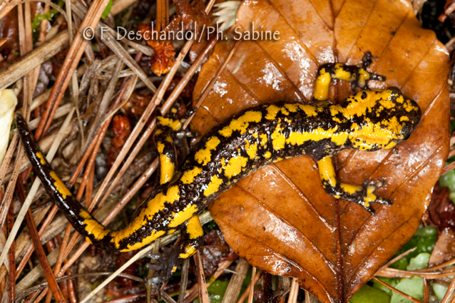 : Salamandre tachetée (Salamandra salamandra bernardezi), Puron, Espagne.