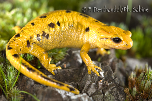 : Salamandre tachetée (Salamandra salamandra bernardezi), Puron, Espagne.