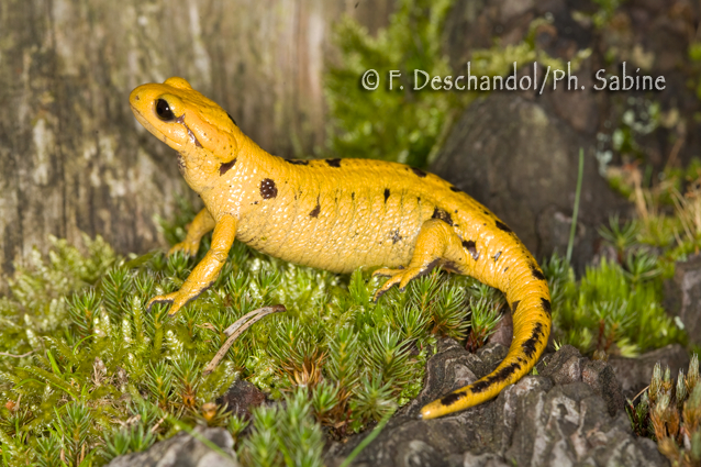 : Salamandre tachetée (Salamandra salamandra bernardezi), Puron, Espagne.