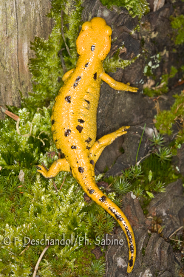 : Salamandre tachetée (Salamandra salamandra bernardezi), Puron, Espagne.