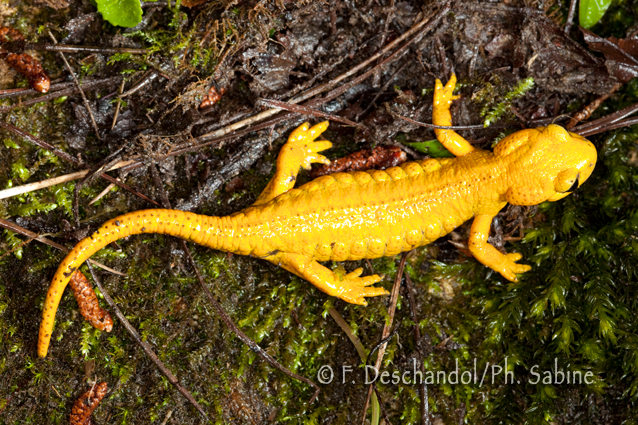 : Salamandre tachetée (Salamandra salamandra bernardezi), Puron, Espagne.