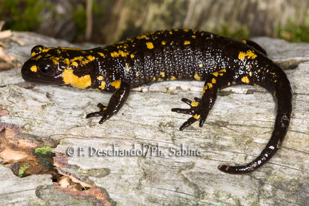 : Salamandre tachetée (Salamandra salamandra bernardezi), Puron, Espagne.