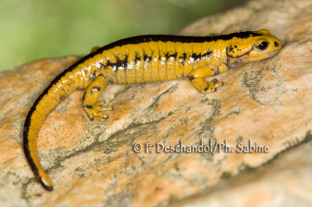 : Salamandre tachetée (Salamandra salamandra bernardezi), Prado, Espagne.