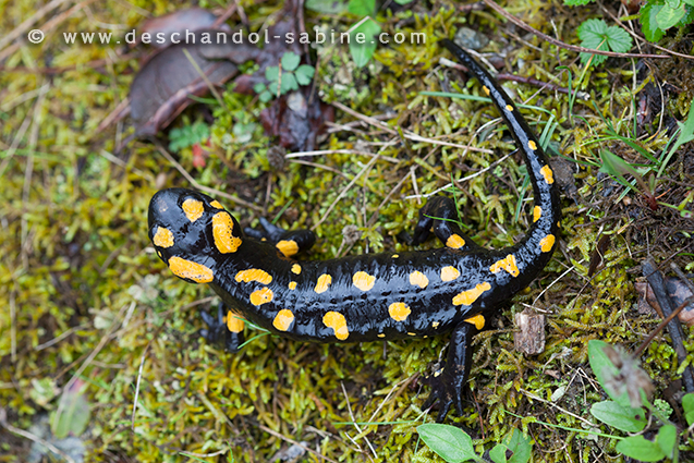 : Salamandre de Corse (Salamandra corsica), Vizzavona, Corse.
