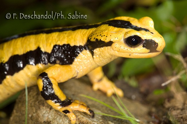 : Salamandre tachetée (Salamandra salamandra fastuosa), Forêt d'Iraty (64), France.