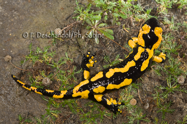 : Salamandre tachetée (Salamandra salamandra fastuosa x bejarae), Santa Gadea de Alfoz, Espagne.