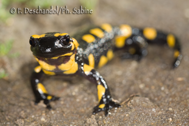 : Salamandre tachetée (Salamandra salamandra fastuosa x bejarae), Santa Gadea de Alfoz, Espagne.