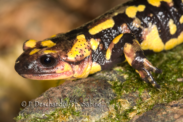 : Salamandre tachetée (Salamandra salamandra fastuosa x bejarae), Soncillo, Espagne.