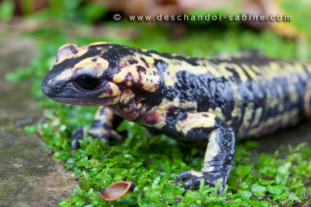 : Salamandre tachetée (Salamandra salamandra gallaica), Coimbra, Portugal.