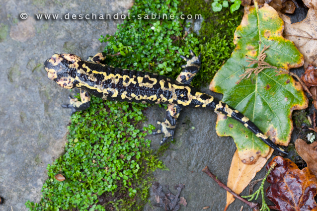 : Salamandre tachetée (Salamandra salamandra gallaica), Coimbra, Portugal.