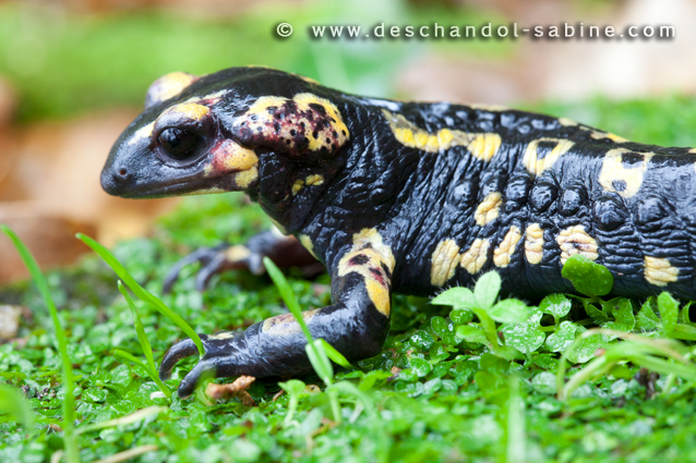 : Salamandre tachetée (Salamandra salamandra gallaica), Coimbra, Portugal.