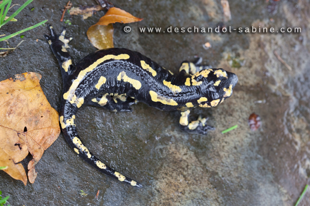 : Salamandre tachetée (Salamandra salamandra gallaica), Coimbra, Portugal.