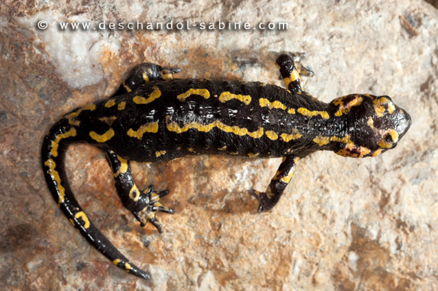 : Salamandre tachetée (Salamandra salamandra gallaica), femelle gravide, Coimbra, Portugal.