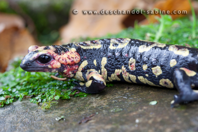 : Salamandre tachetée (Salamandra salamandra gallaica), Coimbra, Portugal.