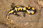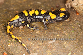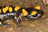Salamandre tachetée (Salamandra salamandra gigliolii), juvénile, Fosdinovo, Italie.