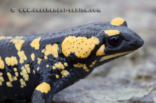 : Salamandre tachetée (Salamandra salamandra longirostris), Los Alcornocales, Espagne.