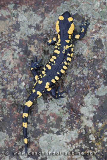: Salamandre tachetée (Salamandra salamandra longirostris), Los Alcornocales, Espagne.