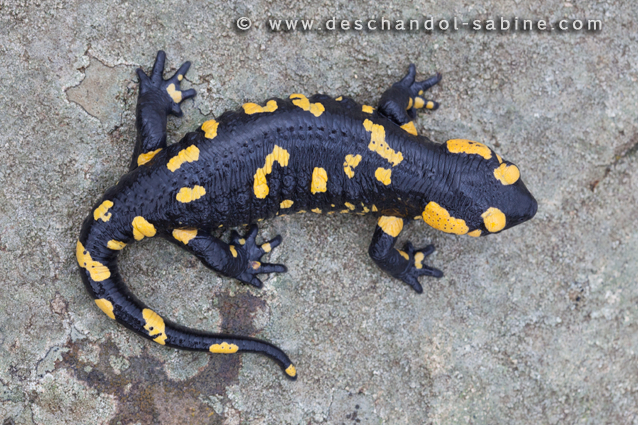 : Salamandre tachetée (Salamandra salamandra longirostris), Los Alcornocales, Espagne.
