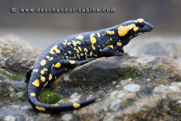 : Salamandre tachetée (Salamandra salamandra longirostris), Los Alcornocales, Espagne.