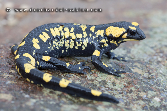 : Salamandre tachetée (Salamandra salamandra longirostris), Los Alcornocales, Espagne.