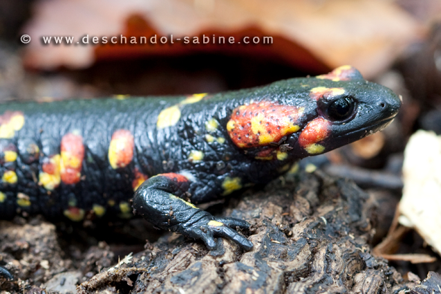 : Salamandre tachetée (Salamandra salamandra morenica), Cazalla de la Sierra, Espagne.