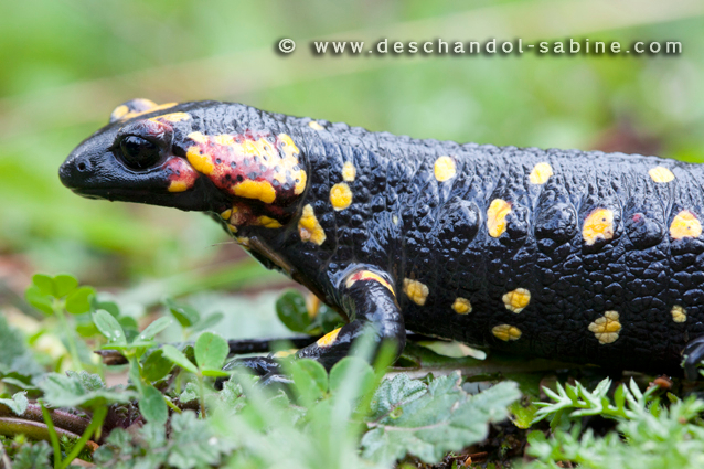 : Salamandre tachetée (Salamandra salamandra morenica), Jabugo, Espagne.