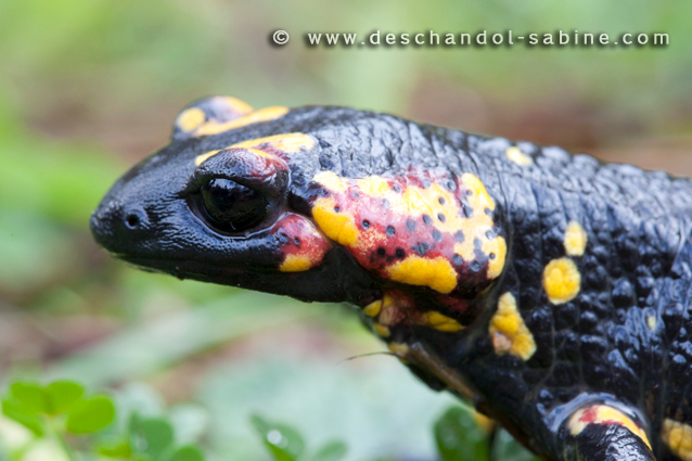 : Salamandre tachetée (Salamandra salamandra morenica), Jabugo, Espagne.