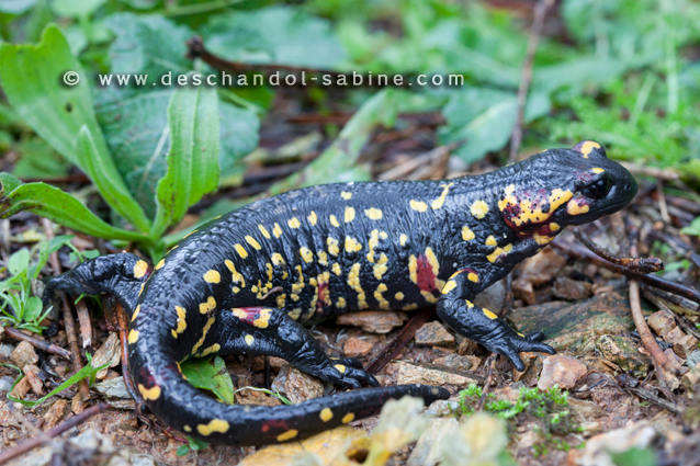 : Salamandre tachetée (Salamandra salamandra morenica), Jabugo, Espagne.