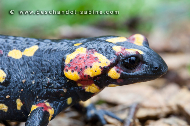 : Salamandre tachetée (Salamandra salamandra morenica), Jabugo, Espagne.