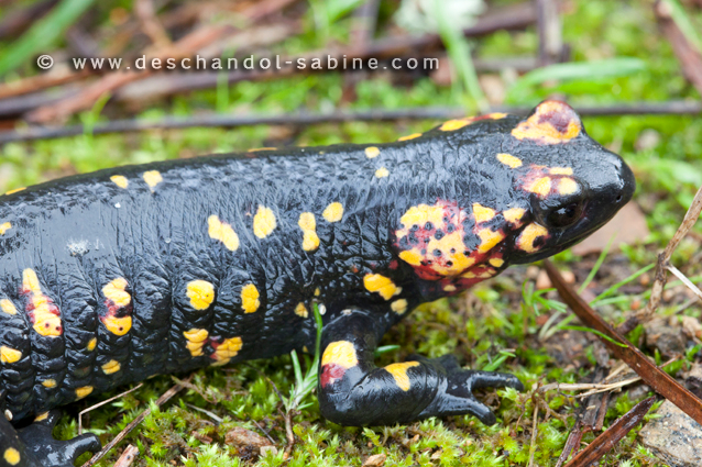 : Salamandre tachetée (Salamandra salamandra morenica), Jabugo, Espagne.