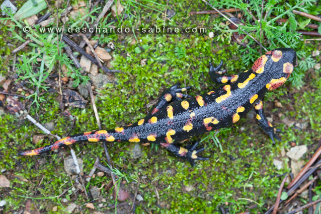 : Salamandre tachetée (Salamandra salamandra morenica), Jabugo, Espagne.