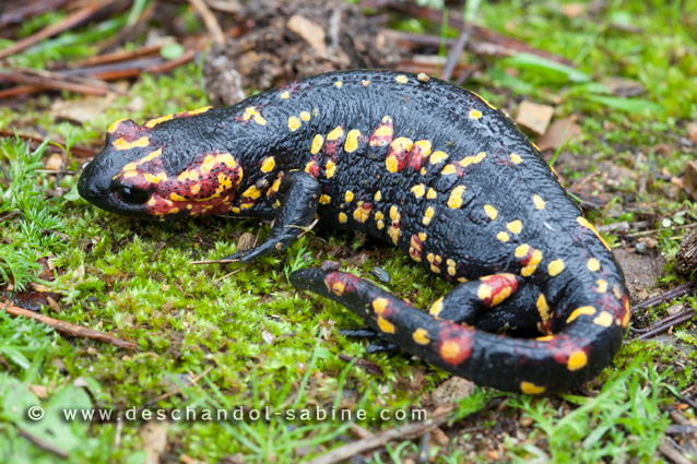 : Salamandre tachetée (Salamandra salamandra morenica), Jabugo, Espagne.