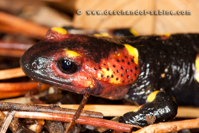 : Salamandre tachetée (Salamandra salamandra morenica), Almonaster la Real, Espagne.