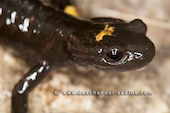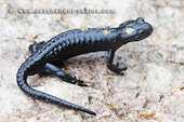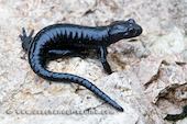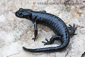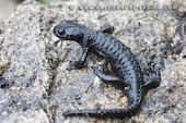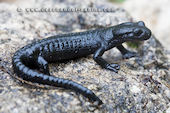 Salamandre noire (Salamandra atra pasubiensis), juvénile, Monte Pasubio, Italie.
