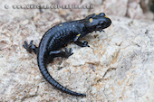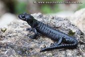 Salamandre noire (Salamandra atra pasubiensis), Monte Pasubio, Italie.