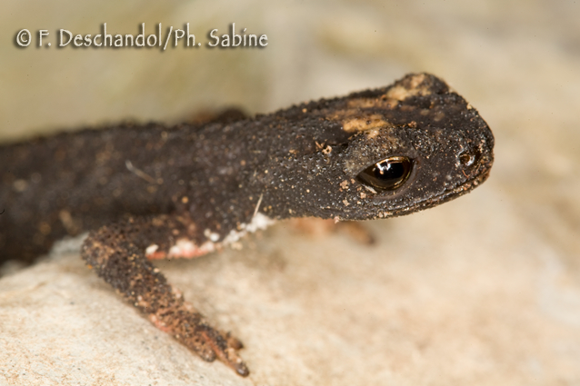 : Salamandrine à lunettes (Salamandrina perspicillata), Rapallo, Italie.