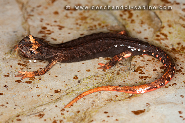 : Salamandrine à lunettes (Salamandrina perspicillata), Rapallo, Italie.