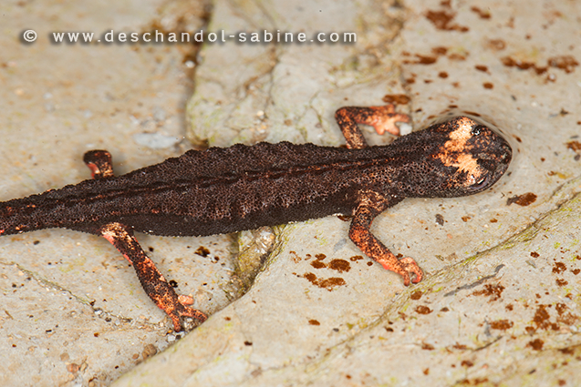 : Salamandrine à lunettes (Salamandrina perspicillata), Rapallo, Italie.