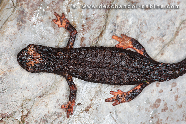 : Salamandrine à lunettes (Salamandrina perspicillata), Rapallo, Italie.