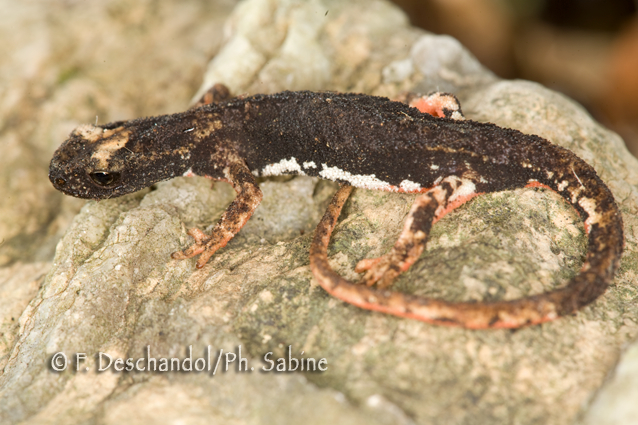 : Salamandrine à lunettes (Salamandrina perspicillata), Rapallo, Italie.