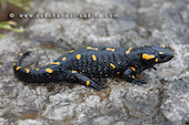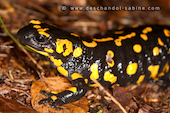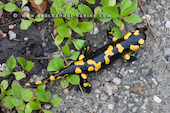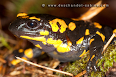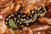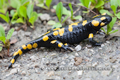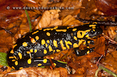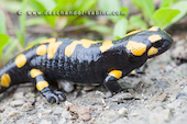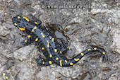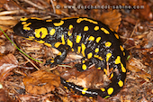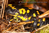 Salamandra tachetée (Salamandra salamandra salamandra), subadulte, Slunj, Croatie.