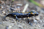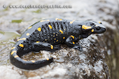 Salamandra tachetée (Salamandra salamandra salamandra), juvénile, Slunj, Croatie.