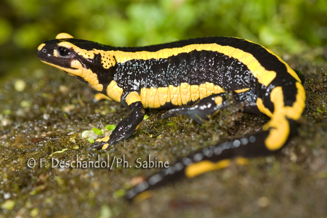 : Salamandre tachetée (Salamandra salamandra terrestris), femelle gravide, Fontaine St Fiacre (27), France.