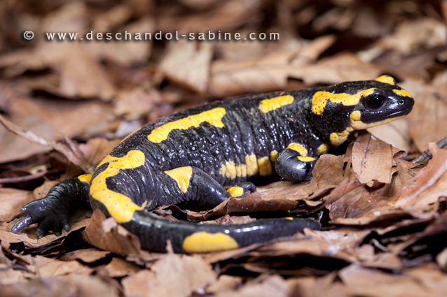 : Salamandre tachetée (Salamandra salamandra terrestris), Val d'Aran (09), France.