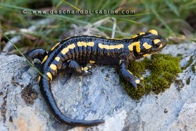 : Salamandre tachetée (Salamandra salamandra terrestris), Barrage de Soulcem (09), France.