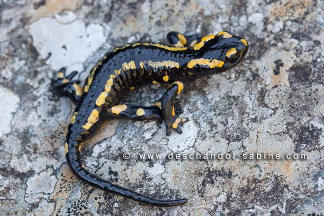 : Salamandre tachetée (Salamandra salamandra terrestris), Barrage de Soulcem (09), France.