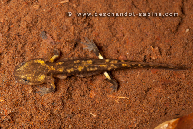 : Salamandre tachetée (Salamandra salamandra terrestris), larve, Montseny, Espagne.