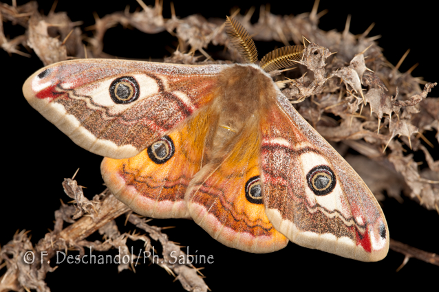 : Paon de nuit austral (Saturnia pavoniella), mâle, Partschins, Sud Tirol, Italie.