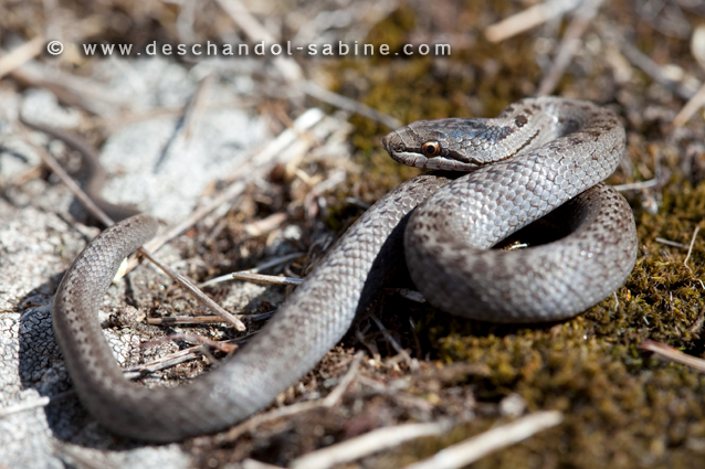 : Coronelle lisse (Coronella austriaca acutirostris), jeune, Laguna de Los Peces, Espagne.